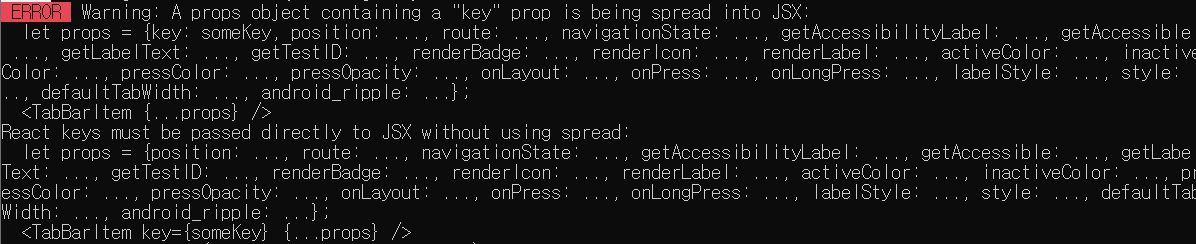 React-Native의 Material-Top-Tab-Navigation이 있는 컴포넌트에 들어가면 해당 에러가 발생했다.