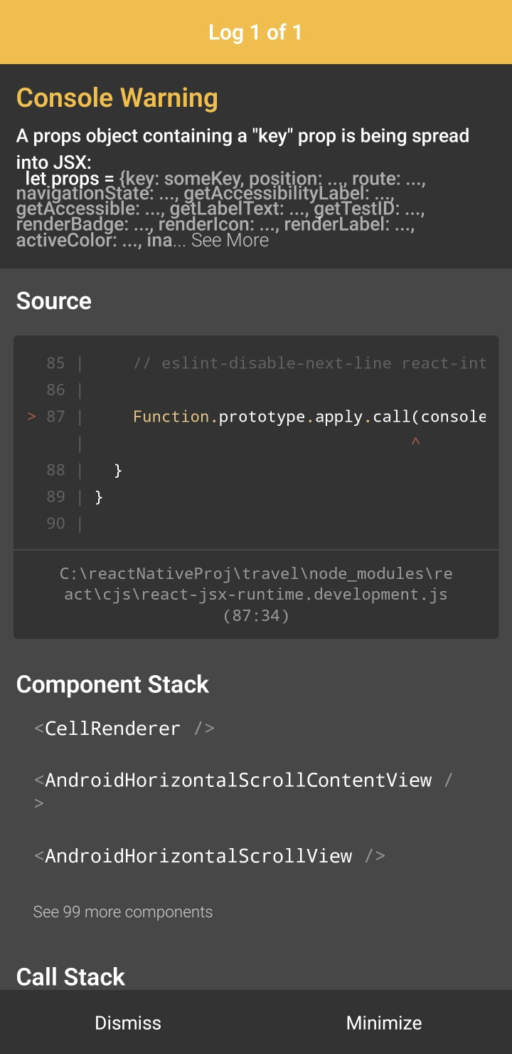 Current behavior Every time I load my app, after updating a bunch of my packages (of note: react-native, expo), I get this error: Warning: A props object containing a "key" prop is being spread int...