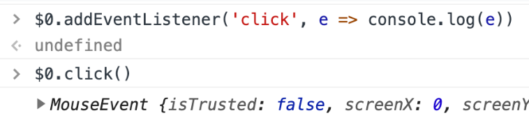 click() 함수를 통해 수행된 이벤트의 isTrusted 값은 false이다.